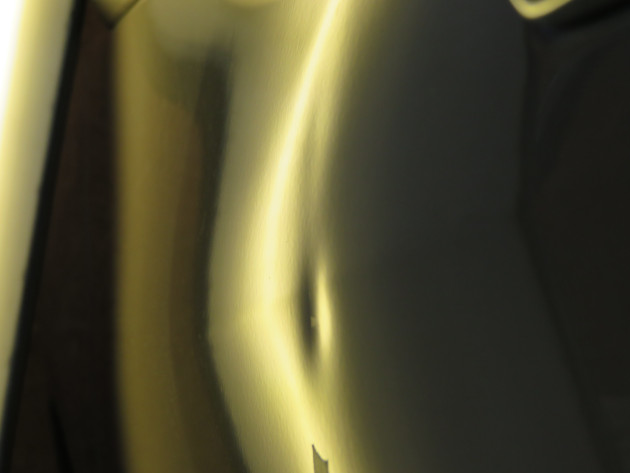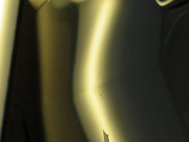 ヘコミの中に少しキズがあります。ヘコミの上側は浅く、プレスラインは潰れています。