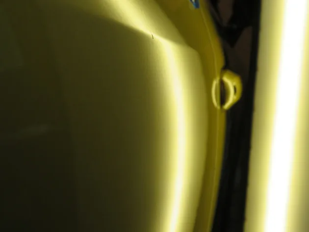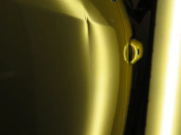 施工例ブログ ドアのプレスラインをデントリペアで修復 2025.07.27 ご依頼いただいたお車はトヨタヤリスクロスです。 ヘコミの場所は右リアドアの上部です。大きさは8cmで、ヘコミの下側は緩くスジ状にへこんでいますが、上側はプレスラインが鋭くへこんでいます。 プレスライン部分は塗膜が少し剥がれてしまっています。 プレスラインもしっかり修復できています。 ご依頼ありがとうございました。 ドアのヘコミをデントリペアで修理 前の記事 フェンダーのヘコミをデントリペアで修復 次の記事