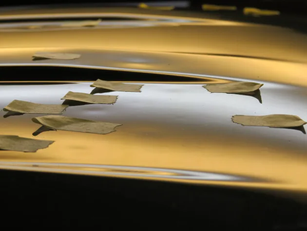 小さな浅いヘコミも見逃さず、一つ一つ丁寧に押し上げ綺麗に仕上げていきます