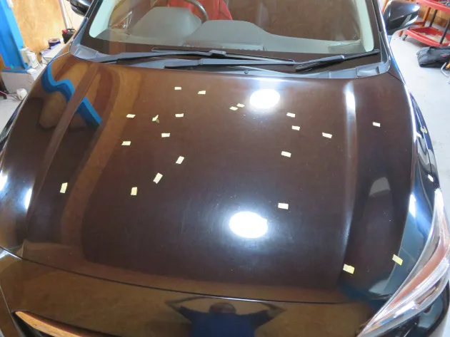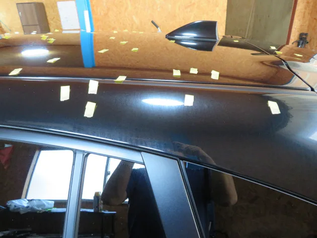 このお車は走行中に雹に遭われてしまったそうです。ヘコミの数はそれほど多くなく、ヘコミの状態も浅めです。
