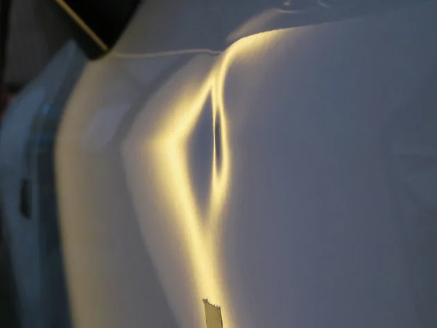 施工例ブログ ドアのプレスラインの深いヘコミ修理 2025.11.08 ご依頼いただいたお車はレクサスRX500hです。 ヘコミの位置は左フロントドアの上部のプレスライン上です。大きさは7cmです。 深めにへこんでいて、ヘコミ上部が膨らんでいます。 少しお時間を掛けさしていただきました。 ご依頼ありがとうございました。 ドアの3cmのヘコミをデントリペアで修復 前の記事
