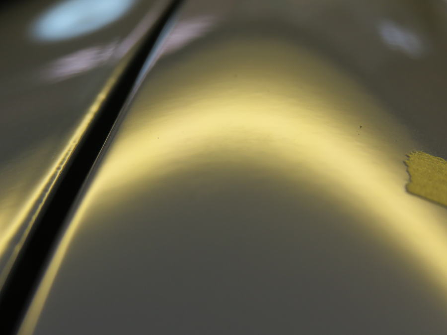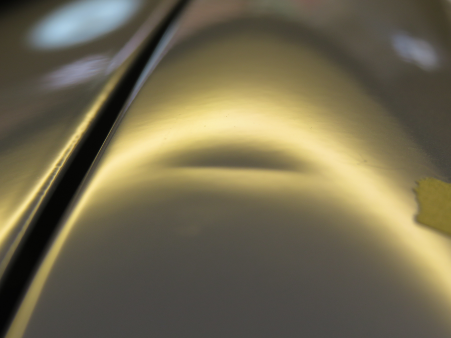 施工例ブログ フェンダーのヘコミをデントリペアで修復 2026.04.21 ご依頼いただいたお車は三菱アウトランダーです。 ヘコミの位置は左フロントフェンダーの上部で、大きさは2cmです。 ツールアクセスアはエンジンルームからです。 ご依頼ありがとうございました。 15cm超の横長のヘコミ修理 前の記事